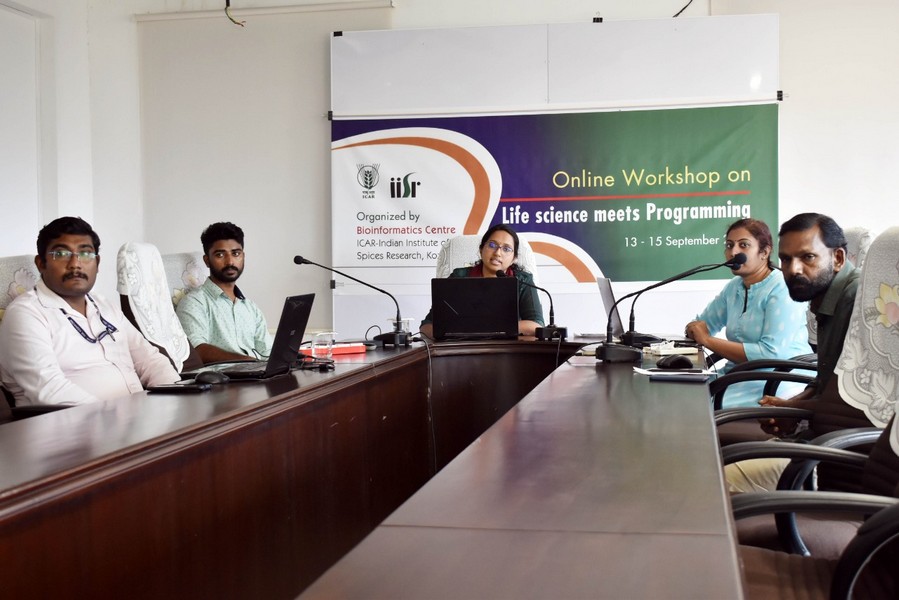 A three days hands-on workshop was organised by the Bioinformatics Centre, ICAR- Indian Institute of Spices Research, Kozhikode from 13-15 September 2022 for Research Scholars, Scientists and Assistant Professors. The inaugural talk was delivered by Dr. Santhosh J Eapen, former Director, ICAR-IISR. The sessions were handled by Ms. Sona Charles, Mr. Mukesh Sankar S and Mr. Jayarajan from ICAR-IISR, Dr. Prashanth N Suravajhala from Amrita Vishwa Vidyapeetham, Mr.Subeesh A from ICAR - Central Institute of Agricultural Engineering, Bhopal and Dr. Merlin Lopez from MS Swaminathan Research Foundation. The workshop included theory as well as hands-on sessions on basic Bioinformatics, introduction to R, Python, Linux and Galaxy. 15 participants were selected from over 200 applicants for the workshop from various ICAR institutes, Universities and colleges. The questions from the participants were answered during the discussion.